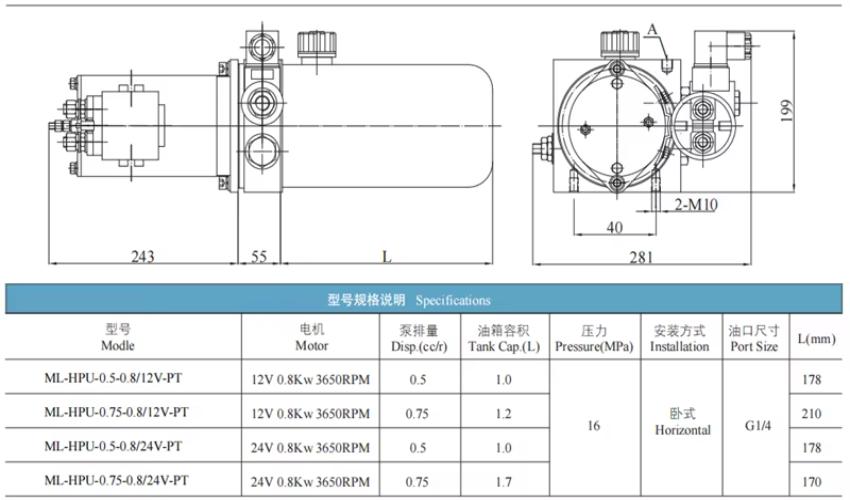 - Tên sản phẩm: Bộ nguồn thủy lực 12V DC