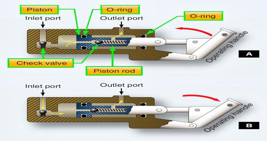 Hình 3: Cách bơm tay thủy lực 1 chiều hoạt động