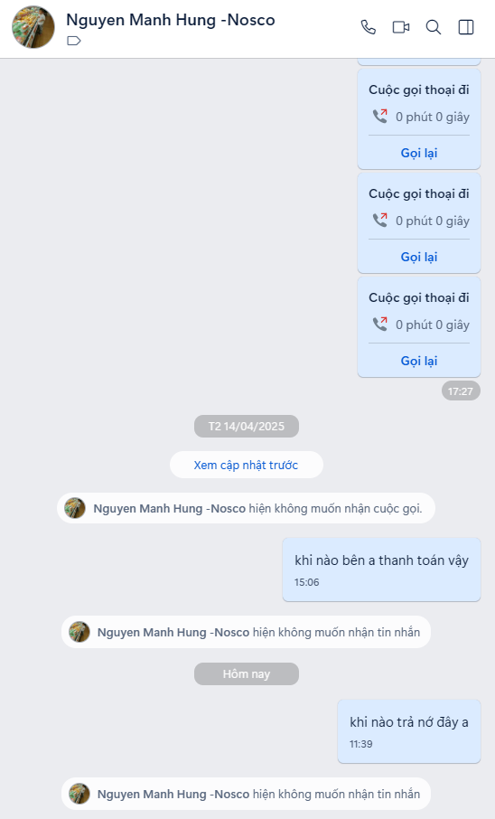 Sau một thời gian dài đòi nợ không thành họ đã chặn toàn bộ liên lạc và không chịu trả nợ.