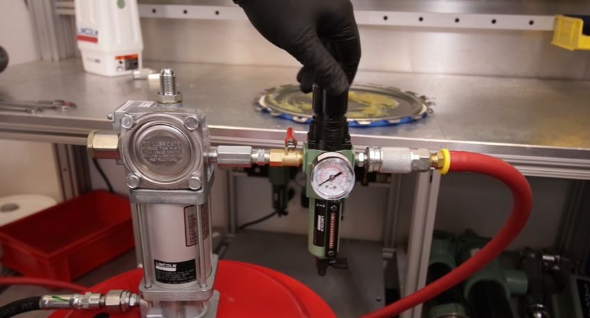 Điều chỉnh van chỉnh áp (pressure regulator) kết hợp quan sát đồng hồ đo áp (manometer) để đặt mức áp suất phù hợp, thường từ 24 đến 32 MPa tùy vào thiết bị cần bôi trơn.