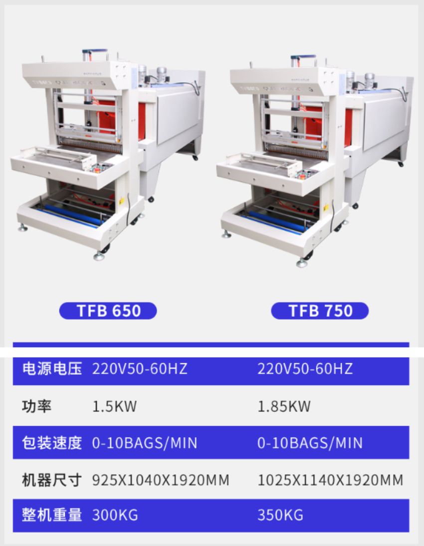 Thông số kỹ thuật máy co màng lốc chai 220V TFP-750