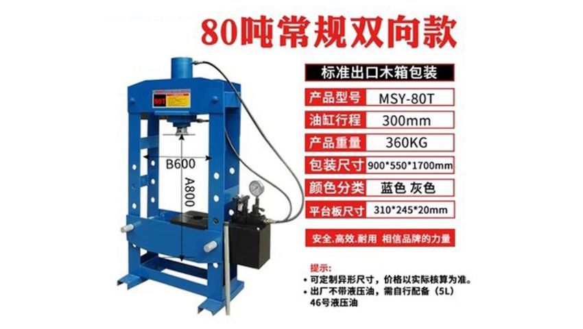 Máy ép thủy lực 80 tấn MSY-80T mang đến giải pháp ép hiệu quả cho các xưởng cơ khí quy mô vừa và lớn. Sở hữu lực ép mạnh, cấu tạo bền bỉ và dễ vận hành, thiết bị này hỗ trợ thao tác nhanh chóng, chính xác, giúp người dùng tiết kiệm thời gian, nâng cao hiệu suất và đảm bảo chất lượng công việc.