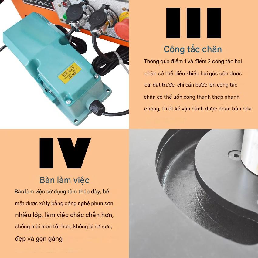 - Máy có khả năng uốn sắt thép nhiều kích cỡ khác nhau, đáp ứng nhu cầu thi công.