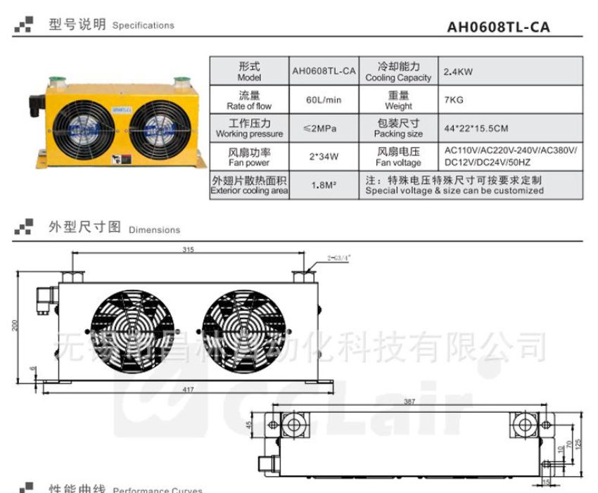 Hiệu suất làm mát của quạt làm mát dầu thủy lực AH068TL-CA, 60L/phút, G1-1/2″